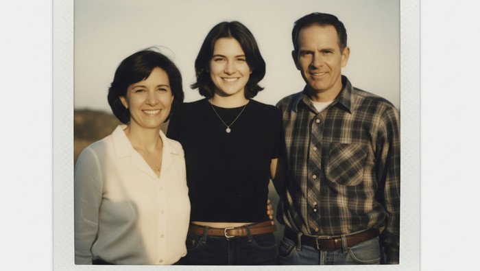 “Ubah foto keluarga ini menjadi potret realistis. Pertahankan wajah asli (tanpa diubah). Posisikan kami sedang berjalan di tengah hutan pinus yang tinggi dan berkabut pada pagi hari. Sinar matahari menembus celah-celah kabut. Suasana tenang dan magis.”