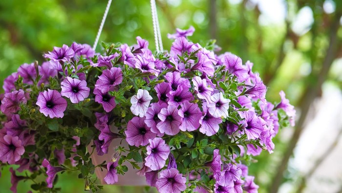 Dilansir dari laman Proven Winners, Petunia merupakan salah satu tanaman hias digantung yang populer dengan bunga berwarna mencolok seperti merah muda dan putih, serta pola garis-garis yang menarik. Jenis bunganya juga dapat mekar terus menerus juga memiliki batang yang kokoh dan mampu tumbuh panjang sekitar 24 inch.