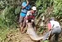 Mangsa Anak Sapi, Ular Piton 7 Meter Mati Ditebas Warga
