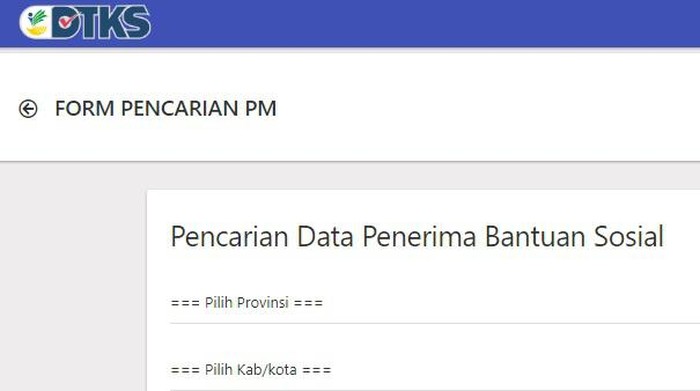 Sistem akan memunculkan data penerima sesuai dengan nama dan lokasi yang dimasukkan. Jika terdaftar akan muncul data jenis bantuan yang diterima. Apabila tidak, penerima mendapat notifikasi “Tidak Terdaftar Peserta/PM”