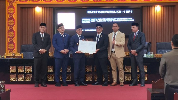 Pemerintah Kota Palembang bersama DPRD Kota Palembang menggelar Rapat Paripurna ke-1 Masa Persidangan I Tahun 2025 dan menyepakati 4 Raperda di ruang rapat utama DPRD Kota Palembang, Selasa (21/10/2025).