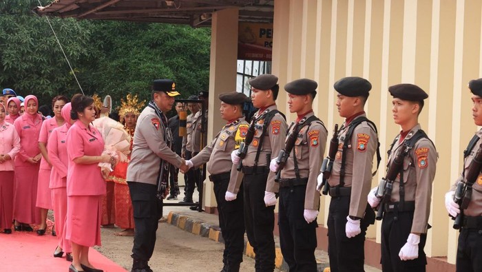 Kapolda didampingi Ketua Bhayangkari Daerah Ny Molly Viktor dan sejumlah Pejabat Utama (PJU) dari Kabid Humas Kombes Fauzan Sukmawansyah hingga Dirkrimsus Polda Babel Kombes Jojo Sutarjo. Rombongan Kapolda disambut jajaran PJU Polres Belitung dan Beltim.