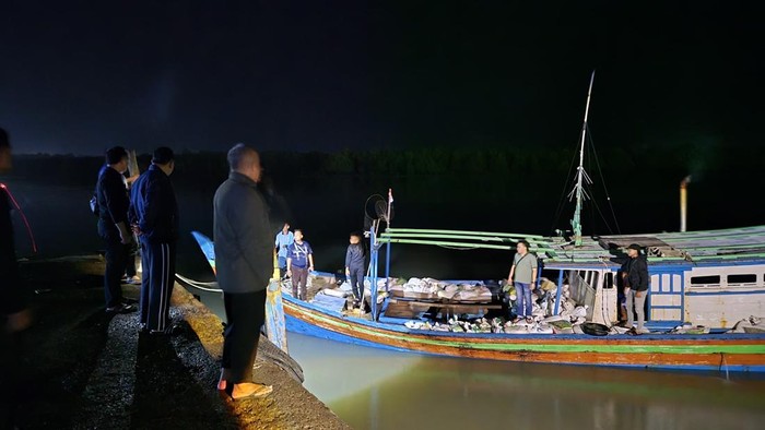 Setelah melakukan pengejaran, tim akhirnya menemukan kapal yang dicurigai membawa atau menyelundupkan pasir timah tersebut. Saat dicek, polisi menemukan 300 karung berisikan pasir timah tanpa dilengkapi dokumen resmi.