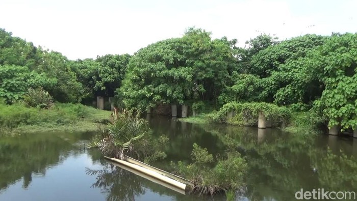 Kata Ujang, saat ini kondisi bangunan revitalisasi itu mangkrak dan dipenuhi rumput liar serta terlihat seperti danau.